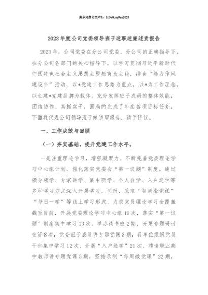 / 【七哥公文】2024年:2023年度公司党委领导班子述职述廉述责报告+更多免费公文+VX:QiGeGongWen2024