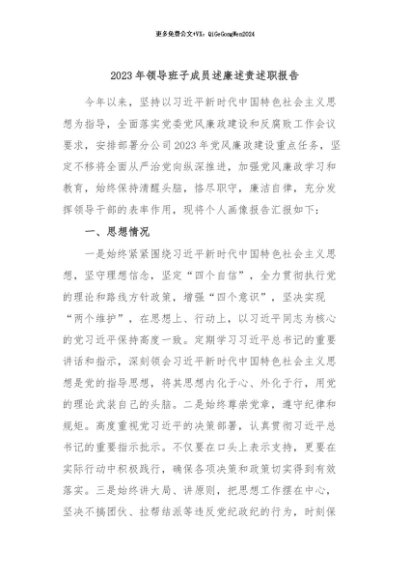 / 【七哥公文】2024年:2023年领导班子成员述廉述责述职报告+更多免费公文+VX:QiGeGongWen2024