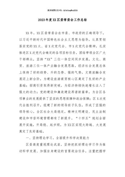 / 【七哥公文】2024年:2023年度XX区委常委会工作总结+更多免费公文+VX:QiGeGongWen2024