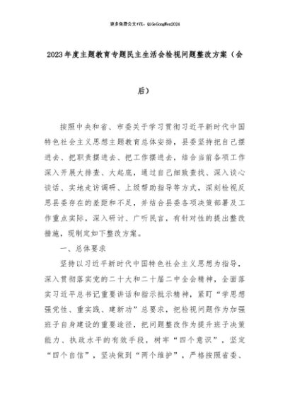 【七哥公文】2024年:2023年度主题教育专题民主生活会检视问题整改方案(会后)+更多免费公文+VX:QiGeGongWen2024