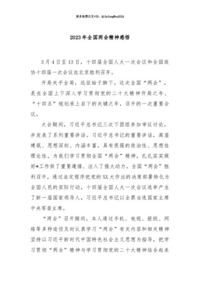 【七哥公文】2024年:2023年全国两会精神感悟+更多免费公文+VX:QiGeGongWen2024