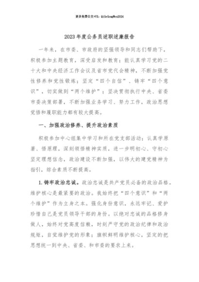 / 【七哥公文】2024年:2023年度公务员述职述廉报告+更多免费公文+VX:QiGeGongWen2024