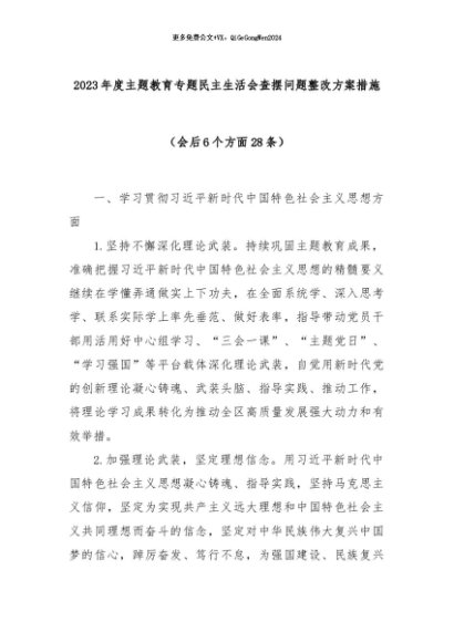 【七哥公文】2024年:2023年度主题教育专题民主生活会查摆问题整改方案措施(会后6个方面28条)+更多免费公文+VX:QiGeGongWen2024