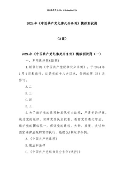 【七哥公文】2024年:(3篇)2024年《中国共产党纪律处分条例》模拟测试题+更多免费公文+VX:QiGeGongWen2024