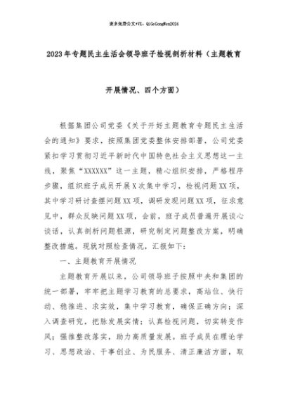 【七哥公文】2024年:2023年专题民主生活会领导班子检视剖析材料(主题教育开展情况、四个方面)+更多免费公文+VX:QiGeGongWen2024