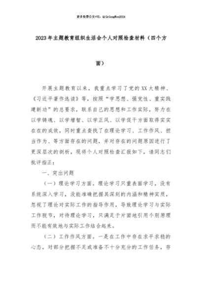 【七哥公文】2024年:2023年主题教育组织生活会个人对照检查材料(四个方面)+更多免费公文+VX:QiGeGongWen2024