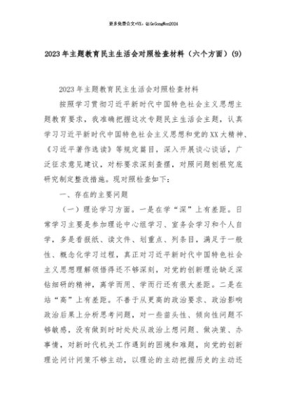【七哥公文】2024年:2023年主题教育民主生活会对照检查材料(六个方面) (3)+更多免费公文+VX:QiGeGongWen2024