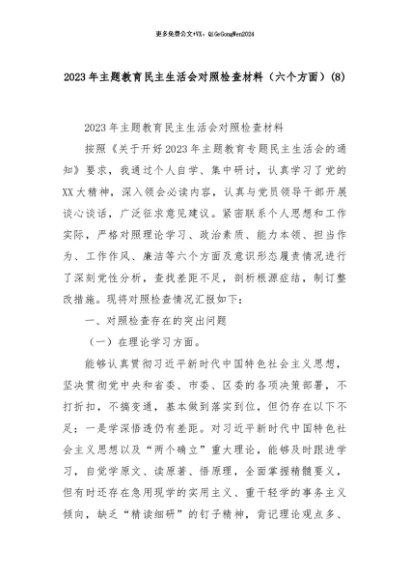 【七哥公文】2024年:2023年主题教育民主生活会对照检查材料(六个方面) (1)+更多免费公文+VX:QiGeGongWen2024