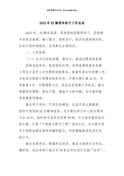 / 【七哥公文】2024年:2023年XX镇领导班子工作总结+更多免费公文+VX:QiGeGongWen2024