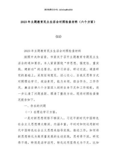 【七哥公文】2024年:2023年主题教育民主生活会对照检查材料(六个方面) (2)+更多免费公文+VX:QiGeGongWen2024