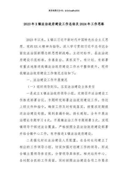 【七哥公文】2024年:2023年X镇法治政府建设工作总结及2024年工作思路+更多免费公文+VX:QiGeGongWen2024