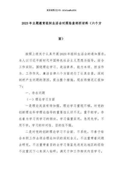【七哥公文】2024年:2023年主题教育组织生活会对照检查剖析材料(六个方面)+更多免费公文+VX:QiGeGongWen2024