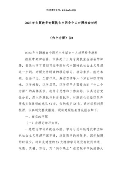 【七哥公文】2024年:2023年主题教育专题民主生活会个人对照检查材料(六个方面)+更多免费公文+VX:QiGeGongWen2024