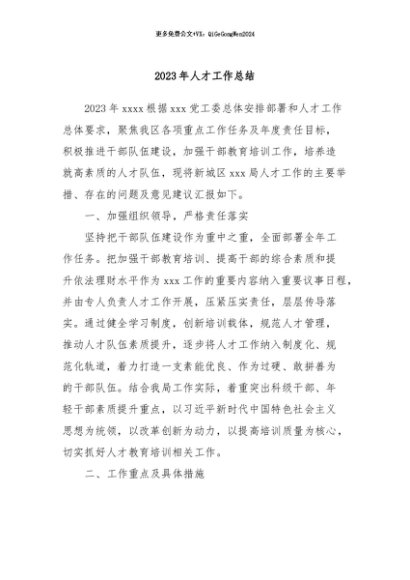 / 【七哥公文】2024年:2023年人才工作总结+更多免费公文+VX:QiGeGongWen2024