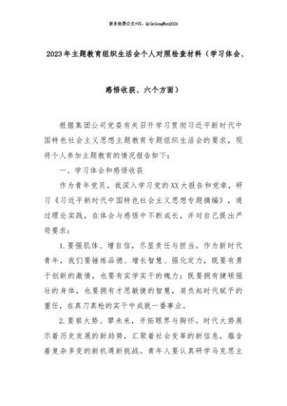 【七哥公文】2024年:2023年主题教育组织生活会个人对照检查材料(学习体会、感悟收获、六个方面)+更多免费公文+VX:QiGeGongWen2024