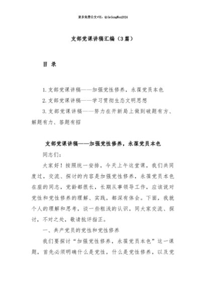 / 【七哥公文】2024年:(3篇)支部党课讲稿汇编+更多免费公文+VX:QiGeGongWen2024