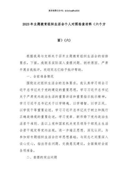 【七哥公文】2024年:2023年主题教育组织生活会个人对照检查材料(六个方面)(六)+更多免费公文+VX:QiGeGongWen2024