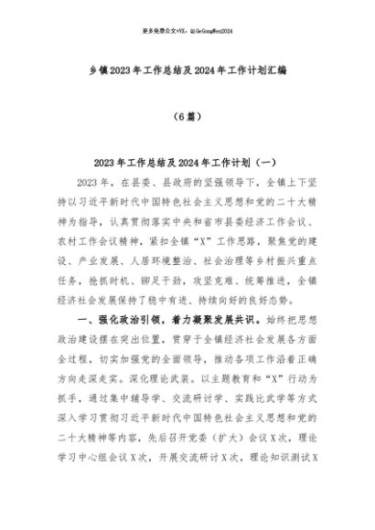 【七哥公文】2024年:(6篇)乡镇2023年工作总结及2024年工作计划汇编+更多免费公文+VX:QiGeGongWen2024