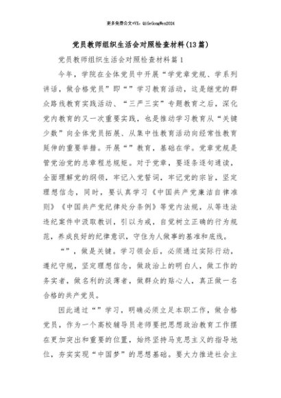 / 【七哥公文】2024年:(13篇)党员教师组织生活会对照检查材料+更多免费公文+VX:QiGeGongWen2024