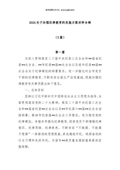 【七哥公文】2024年:(3篇)2024关于加强纪律教育的实施方案材料合辑+更多免费公文+VX:QiGeGongWen2024