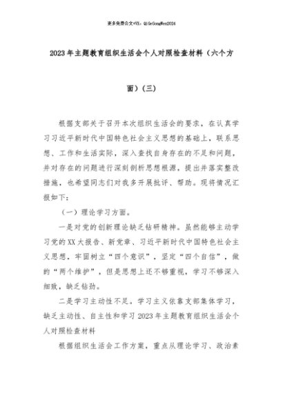 【七哥公文】2024年:2023年主题教育组织生活会个人对照检查材料(六个方面)(三)+更多免费公文+VX:QiGeGongWen2024