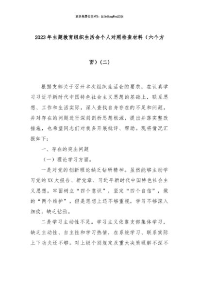 【七哥公文】2024年:2023年主题教育组织生活会个人对照检查材料(六个方面)(二)+更多免费公文+VX:QiGeGongWen2024