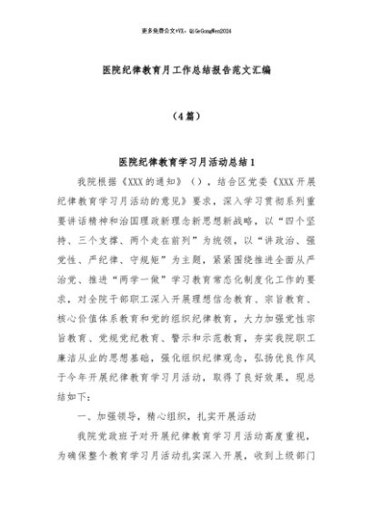 / 【七哥公文】2024年:(4篇)医院纪律教育月工作总结报告范文汇编+更多免费公文+VX:QiGeGongWen2024