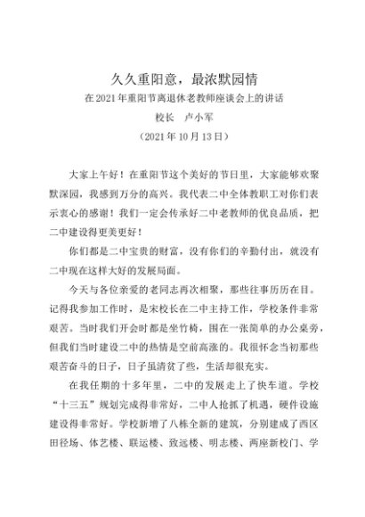 时令材料∣重阳节:20211013在2021年重阳节离退休老教师座谈会上的讲话——校长 卢小军