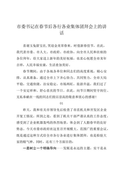 / 时令材料∣春节:20240213市委书记在春节后各行各业集体团拜会上的讲话