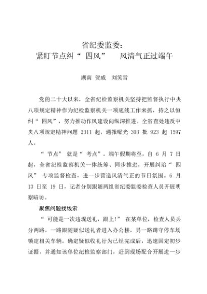 / 时令材料∣端午节:20230621省纪委监委:紧盯节点纠“ 四风” 风清气正过端午——湖南日报
