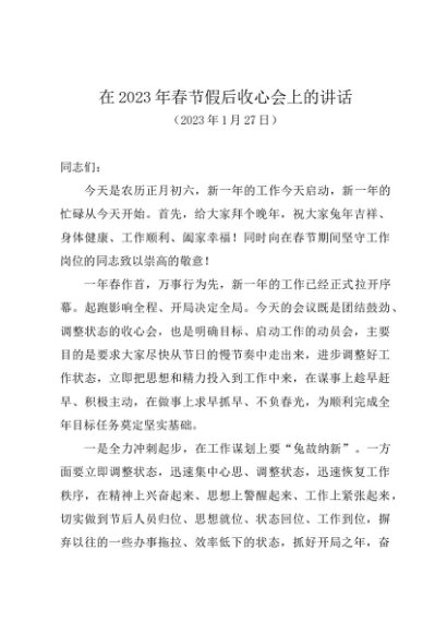 时令材料∣春节:20230127在2023年春节假后收心会上的讲话