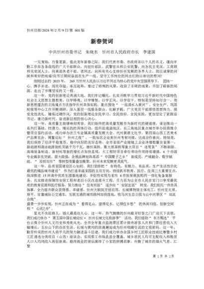 / 时令材料∣春节:20240209忻州市2024年新春贺词