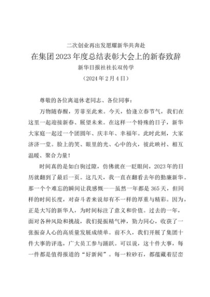 / 时令材料∣春节:20240204在集团2023年度总结表彰大会上的新春致辞——新华日报社社长
