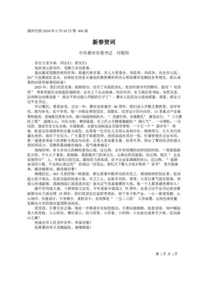 / 时令材料∣春节:20240209莆田市2024年新春贺词