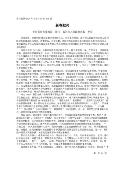 / 时令材料∣春节:20240209嘉兴市2024年新春献词