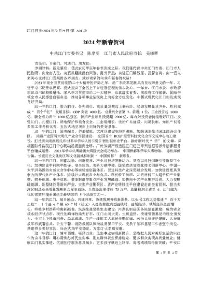 / 时令材料∣春节:20240209江门市2024年新春贺词
