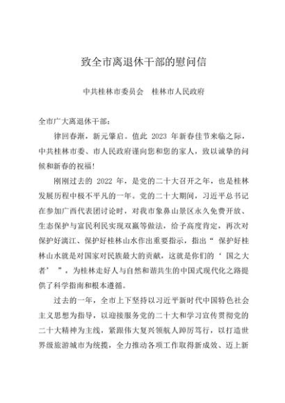 时令材料∣春节:2023年春节致全市离退休干部的慰问信——桂林市委市政府