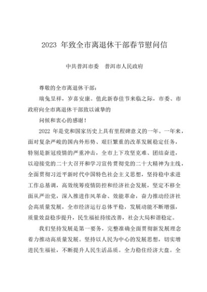 时令材料∣春节:20230120致全市离退休干部春节慰问信——普洱市委市政府