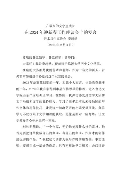 / 时令材料∣春节:20240204在2024年迎新春工作座谈会上的发言——沂水县作家协会