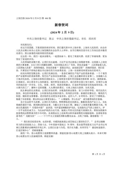 时令材料∣春节:20240209上饶市2024年新春贺词