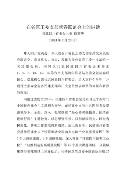 / 时令材料∣春节:20240220在省直工委支部新春联谊会上的讲话——民建四川省委会主委