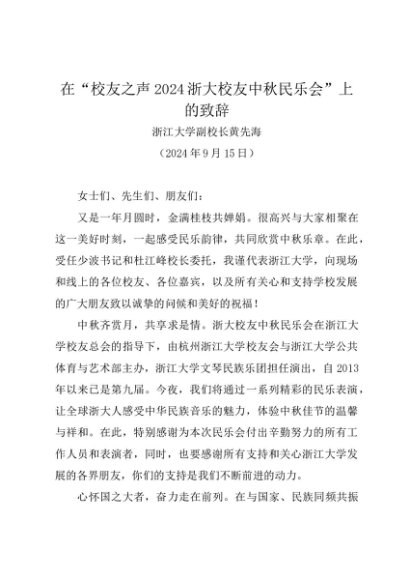 / 时令材料∣中秋节:20240915在“校友之声2024浙大校友中秋民乐会”上的致辞——浙江大学副校长黄先海