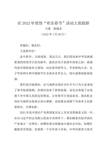 / 时令材料∣春节:20220128在2022年使馆“欢乐春节”活动上的致辞
