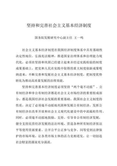 时令材料∣1205宪法日:20191205坚持和完善社会主义基本经济制度——国务院发展研究中心副主任 王一鸣