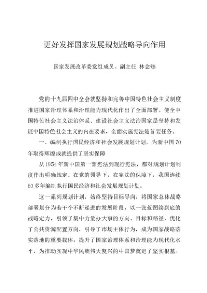 时令材料∣1205宪法日:20191205更好发挥国家发展规划战略导向作用——国家发展改革委副主任 林念修