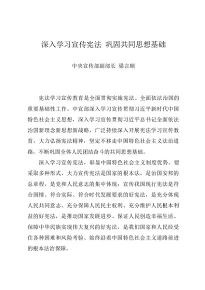 / 时令材料∣1205宪法日:20191205深入学习宣传宪法 巩固共同思想基础——中央宣传部副部长 梁言顺
