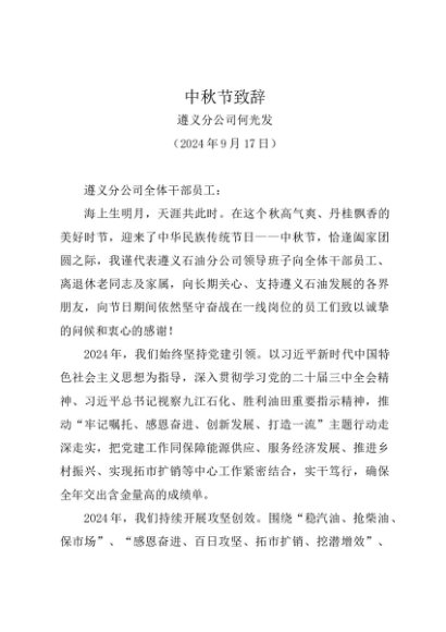 / 时令材料∣中秋节:20240917中秋节致辞——遵义分公司