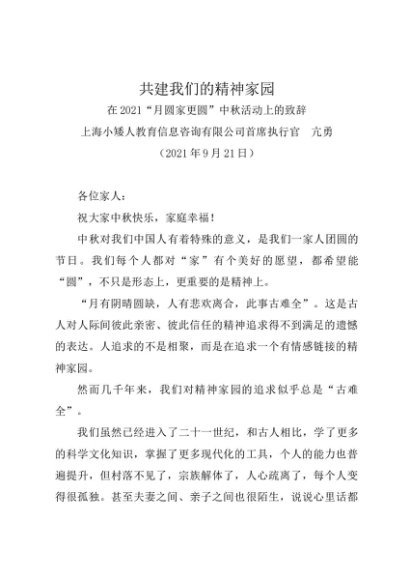 时令材料∣中秋节:20210921在2021“月圆家更圆”中秋活动上的致辞——上海教育信息咨询有限公司亢勇