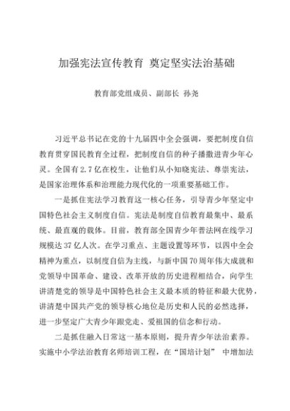 时令材料∣1205宪法日:20191205加强宪法宣传教育 奠定坚实法治基础——教育部副部长 孙尧