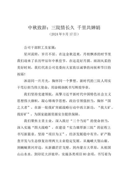 时令材料∣中秋节:20240917中秋致辞:三院情长久 千里共婵娟